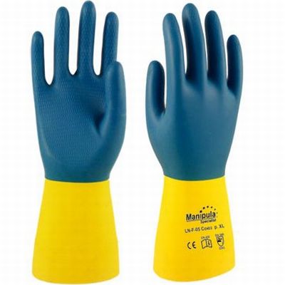 Двухслойные герметичные перчатки из латекса и неопрена с надежной защитой от широкого спектра химических веществ, имеют высокую устойчивость к моющим средствам