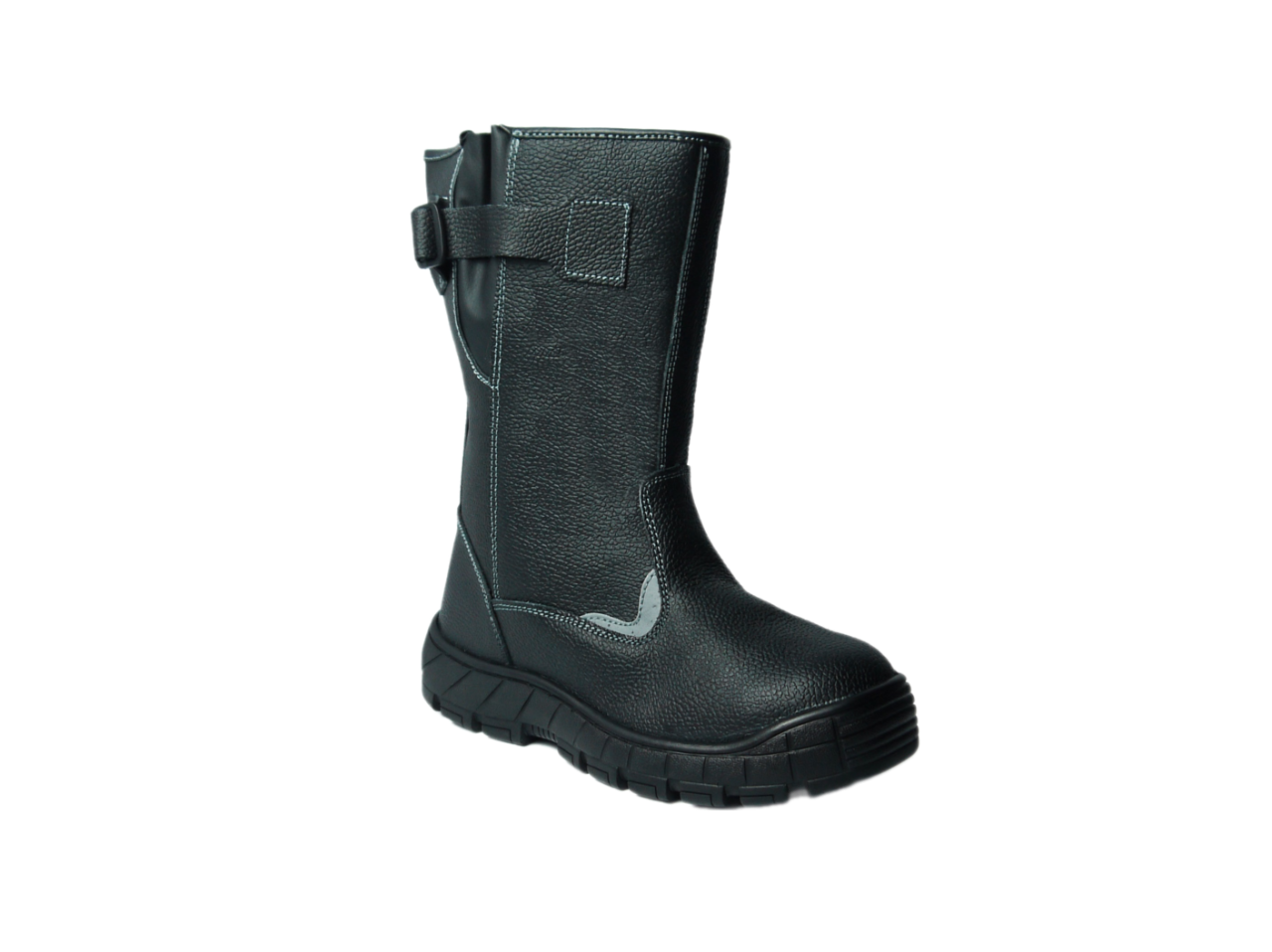 Голенище регулируется пластиковой термостойкой пряжкой на ремне. Двойные швы дополнены светоотражающим кантом. Глубина рельефного протектора ходового слоя более 4,0 мм.